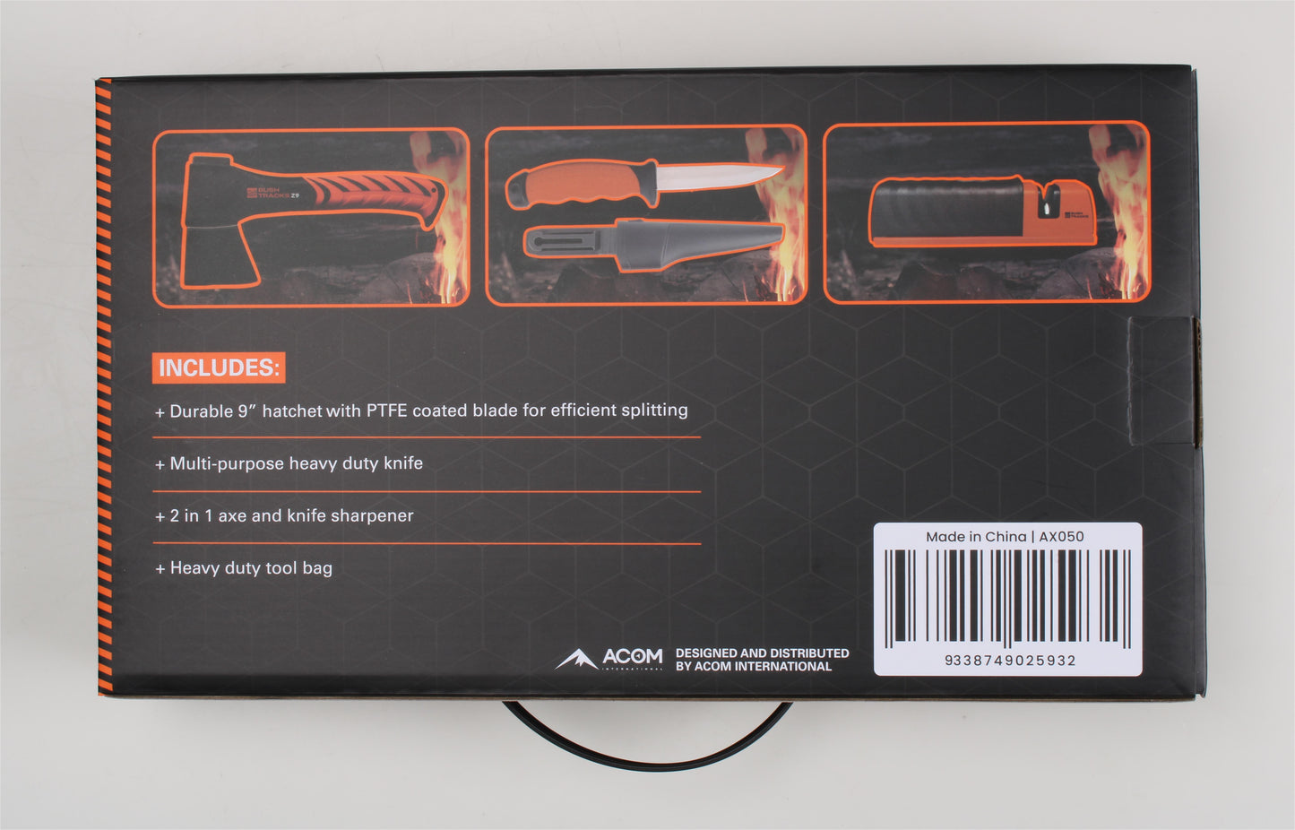 Regular price $59.99Upgrade your outdoor setup with this compact, heavy-duty tool kit—perfect for camping, firewood prep, 4WD adventures, and backyard use. Designed for durability and everyday practicality, this kit includes a 9” chopping axe, multi-purpose knife, ceramic sharpener, and a tough carry bag to keep everything organised and ready to go.